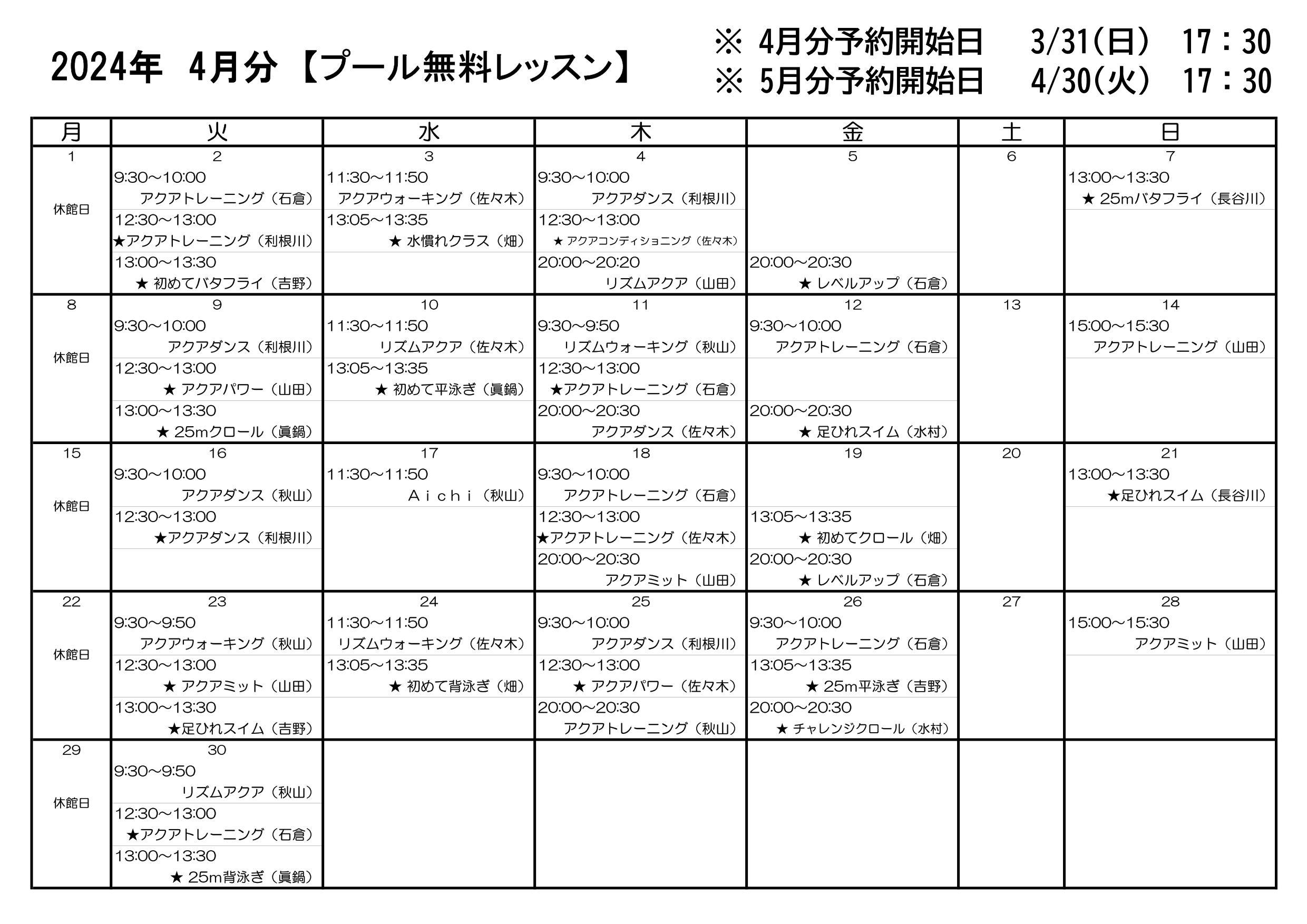2024年4月レッスンプログラム
